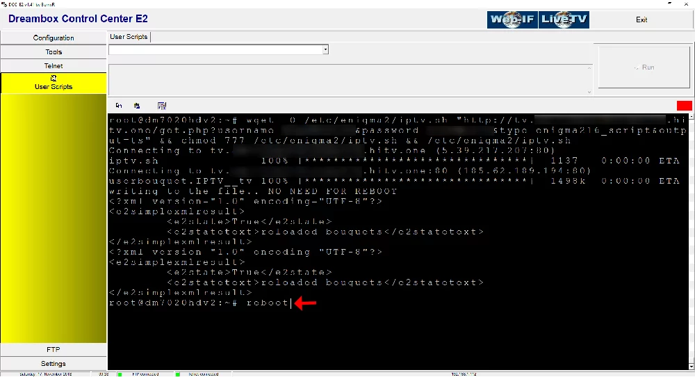 Once connected to your box via Dreambox Control Center, it`s time to execute the Autoscript command which should be provided by your IPTV provider. These scripts can be given in two versions: