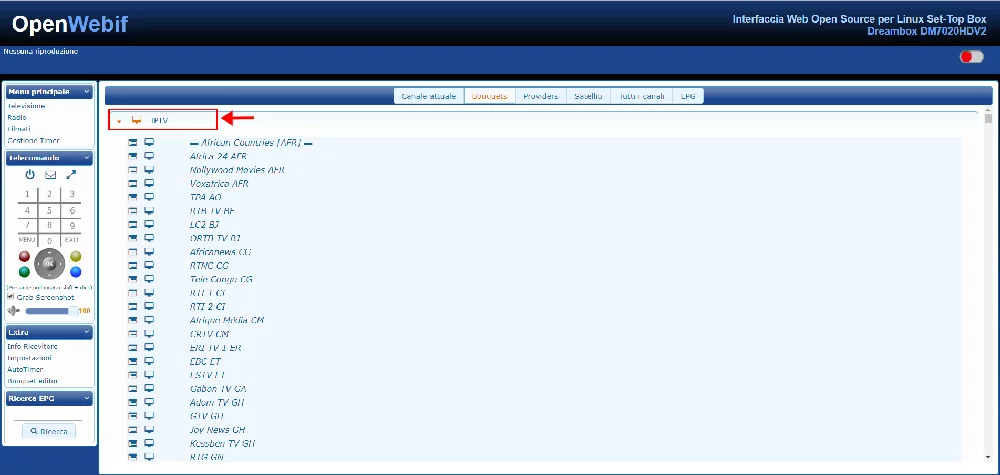 After the Reboot, you will see on Bouquet list a new Group called “IPTV”.