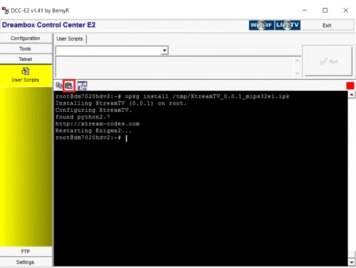 Start by downloading the necessary items. Download the XtreamTV Plugins and DCC_E2 (Dreambox Control Center for Enigma2), extract both of the files and open DCC_E2. After opening the DCC_E2, enter your Enigma 2 IP address and in the login section, you can use the word “Root” for both username and password. Now click on “reconnect“.
