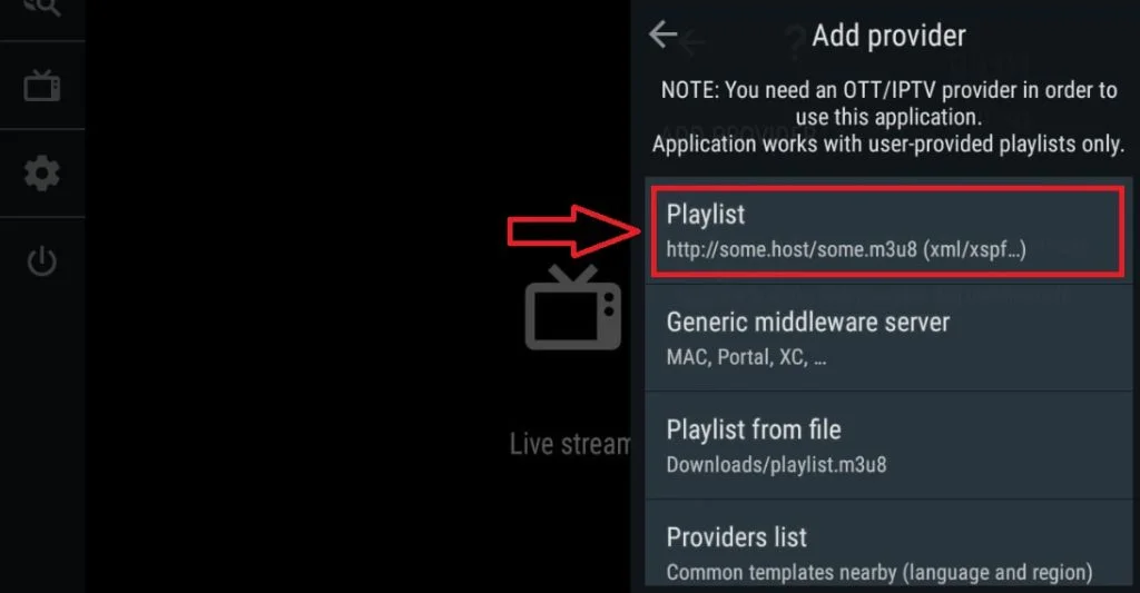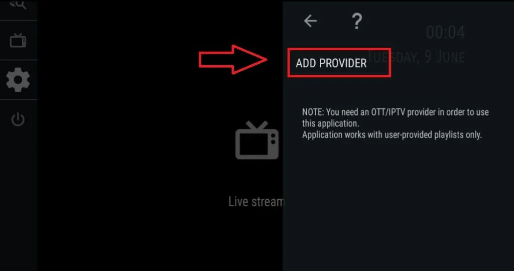 OTT Navigator Step 1= Download the app and open it Step 2= Click on the settings icon shown in the picture Step 2= Select the “Apps” panel. tep 3= Click on the provider text shown in the picture Step 4= Click on the add provider text shown in the picture Step 5= Click on the playlist text shown in the picture Step 6= To the place shown in the picture Paste the m3u plus link in the sent to you Step 7= Click on the apply text shown in the picture