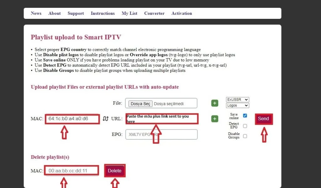 Step 4= Type your mac address and m3u plus link in order as shown in the picture